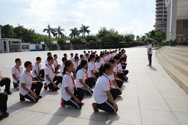 表演結(jié)束后,初一德育主任黎水建總結(jié)一周集訓(xùn)情況,盡管訓(xùn)練時(shí)間短,但完成度高,常務(wù)班長(zhǎng)能迅速進(jìn)入狀態(tài),但值日班長(zhǎng)宣誓與總結(jié)還需加強(qiáng)培訓(xùn)。