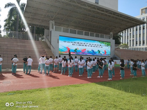 為了使初三學生能夠進一步熟悉中考規(guī)則,了解2020年體育中考具體操作程序,從心理上做好各項準備,有效提高體育中考適應能力,2020年6月12日上午,在德育處和體育科組的組織策劃下,開發(fā)區(qū)二中初三體育老師、班主任和學生的共同參與下,在學校足球場進行了初三體育中考動員大會。對于這次體育中考,學校領導非常重視,專門成立了以歐陽祝棣校長為組長的工作小組,并對初三學生進行了嚴格的考前訓練和細致的心理輔導,做好迎考的各項工作,以確??荚嚨捻樌M行。在動員大會上,德育處黃彩華主任強調(diào),考生們要認真考試,仔細閱讀和了解體育中考的內(nèi)容,要求和評定標準,正確的分析自己,理性的對待自己,并以積極的態(tài)度面對體育中考,中考的第一關就可以順利通過。體育科組馮列文老師還提醒考生,由于體育中考與平時訓練場景不同,因心理準備不足等導致中考成績不理想的例子很多,因此希望考生們調(diào)整心態(tài),以適應中考環(huán)境,提高心理承受力,在中考中取得優(yōu)異成績。