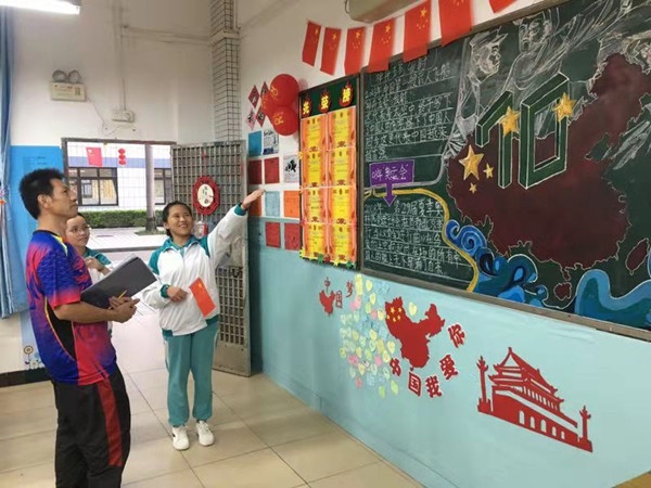 通過一個(gè)星期的精心布置,9月27日下午,一個(gè)個(gè)充滿喜慶紅的班級(jí)打造呈現(xiàn)在評(píng)委面前。此次評(píng)比內(nèi)容包括班級(jí)特色文化、黑板報(bào)、展示墻、圖書角和班務(wù)衛(wèi)生、整體設(shè)計(jì)等。班主任和同學(xué)們對(duì)教室的班級(jí)文化進(jìn)行了精心設(shè)計(jì),把“美”的教育滲透在班級(jí)文化的各個(gè)方面。有的班制定了富有特色的紅色基因,如“我與國(guó)旗同框”“我為祖國(guó)祝?!钡茸晕艺故酒脚_(tái),營(yíng)造了喜迎國(guó)慶的健康向上、富有朝氣的班級(jí)文化氛圍,增強(qiáng)了班級(jí)的凝聚力,培養(yǎng)了學(xué)生的集體榮譽(yù)感,體現(xiàn)了學(xué)生的綜合素質(zhì)和班級(jí)特色。加強(qiáng)班級(jí)文化建設(shè),不僅是實(shí)施素質(zhì)教育的一個(gè)要舉措,也是是貫徹學(xué)?!白稹邸碧厣幕逃闹匾w現(xiàn)。此次活動(dòng)的開展,不僅培養(yǎng)了師生的動(dòng)手能力和創(chuàng)新能力,彰顯了班級(jí)文化特色,營(yíng)造了和諧濃厚的“喜迎國(guó)慶”校園文化氛圍,而且啟迪了學(xué)生思想,陶冶了學(xué)生情操,為學(xué)校增添了一道亮麗的風(fēng)景線。