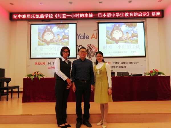 “家校聯(lián)動教育教學(xué)模式”是紀中雅居樂凱茵學(xué)校的一大教學(xué)特色,繼紀雅學(xué)校家長服務(wù)中心成立儀式之后,學(xué)校的家校合作更為密切有效。2018年4月11日下午,由袁祥樊校長助理和廖偉樂副主任組織,初一(5)班黃佳薇家長多方協(xié)調(diào),盛情邀請中山市教育教學(xué)研究室的朱敏嫣老師為我們上了的一堂不同尋常的班會課。初一年級的六百余名同學(xué)、袁祥樊校長助理、廖偉樂副主任和初一年級12名班班主任,齊聚報告廳,聆聽了朱敏嫣老師主講的一場名為《時差一小時的生徒——日本初中學(xué)生教育的啟示》的講座。
