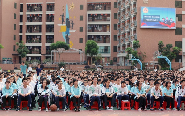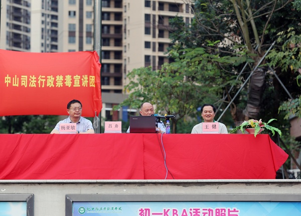 2018年4月12日下午,陽光明媚,春意盎然。在這個美好的日子里,紀中雅居樂凱茵學校的操場上,1800多名紀雅學子正在認真聆聽本學期的第一次法制教育專題講座,這也是四博課程體系中,法制安全課程的重要一課。會上,中山司法行政禁毒宣講團成員,中山市司法局黨委委員、中山市強制戒毒所所長呂舟對全校師生作了“正確認識毒品,堅決拒絕毒品,爭做新時代陽光青年”的專題講座。中山市紀中雅居樂凱茵學校校長王健、副校長楊亞敏出席,活動由初二年級德育副主任李林峰主持。