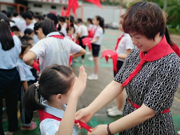 2019年5月31日,中山市火炬開發(fā)區(qū)新苗學(xué)校的校園里,隊歌嘹亮。一年級和六年級的全體師生聚集在國旗下,舉行了隆重的新隊員入隊儀式。
