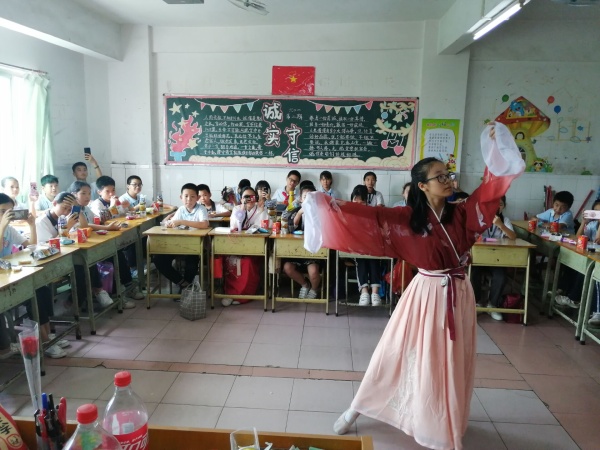 活動中,各班學(xué)生早早將教室桌椅擺放好,分小組坐好,并拿出自己精心準備的各種美食,與老師,同學(xué)們分享。同學(xué)們一邊品嘗著美食一邊觀看表演。有的班級以傳統(tǒng)活動為主,如:猜謎語、搶板凳、撕名牌等游戲穿插到節(jié)目中,教室里充滿了學(xué)生的歡歌笑語。有的班級以“歌唱祖國、獻詩給祖國”為主題,展示著各自的才藝,有合唱,詩朗誦、舞蹈等節(jié)目,臉上洋溢著幸福的微笑。有的班級活動內(nèi)容形式多樣,如:擊鼓傳花、歌曲串燒、氣球運輸?shù)裙?jié)目。表達著心中的喜悅之情。同學(xué)們通過不同的節(jié)目形式,展現(xiàn)了當代少年兒童熱愛祖國,朝氣蓬勃、昂揚向上的精神風(fēng)貌。