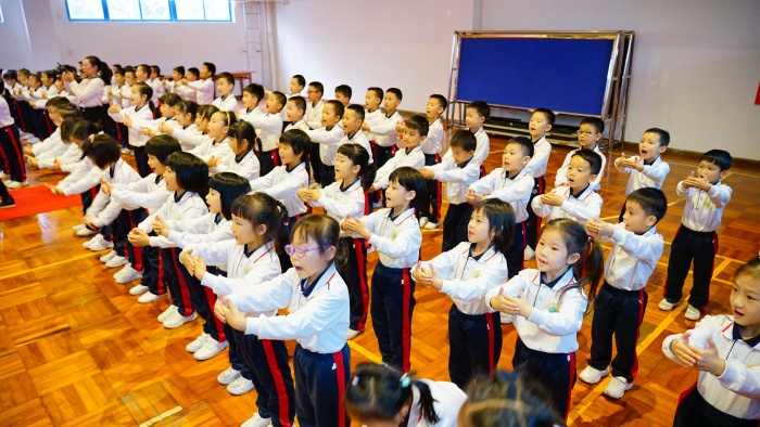 入學(xué)禮的第一個(gè)環(huán)節(jié)是行尊師禮,同學(xué)們先正衣冠,再向老師行禮,然后大家一起聆聽(tīng)尊師的故事,從故事中體會(huì)什么是尊師。