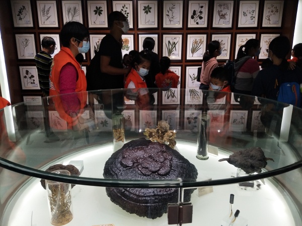 四樓的“中藥世界”主題展示區(qū)分為生藥標(biāo)本、浸制標(biāo)本、臘葉標(biāo)本、真?zhèn)螛?biāo)本及廣東道地藥材、中山特色藥材、醫(yī)院制劑、中成藥、名方鑒賞、廣東涼茶等展區(qū)。超巨型的靈芝、各色各樣的動植物標(biāo)本令孩子們大開眼界、驚嘆不已。館方還貼心地為每一位孩子送上驅(qū)蚊香包禮物,孩子們根據(jù)驅(qū)蚊方配制自己的驅(qū)蚊香包,親身體驗(yàn)了一把小藥師的樂趣。