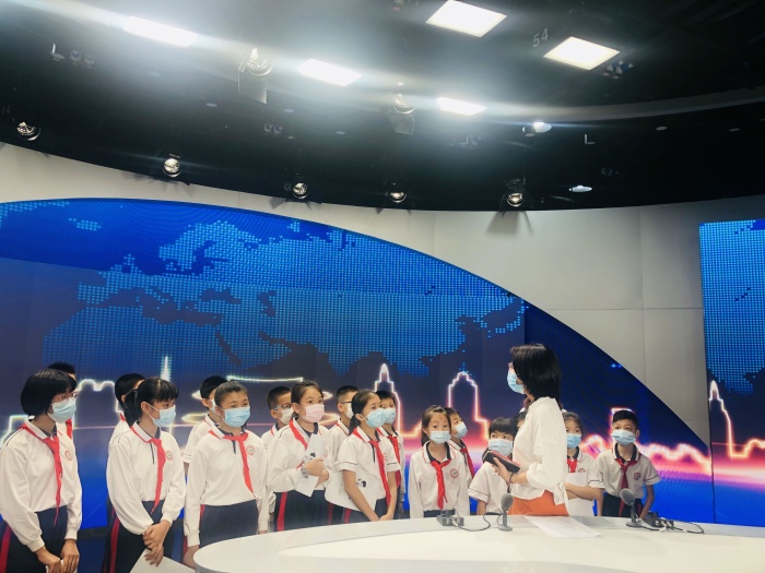 11日18日下午,白云繾綣,風兒悠悠,天氣晴好,中山市石岐西廠小學五(2)聲潤童心班的同學們在班主任陳敏老師和黃芷悅、李小梅及朱偉紅老師的帶領下,前往中山廣播電視臺參觀體驗。此次活動旨在讓同學們探秘現(xiàn)代化高科技演播平臺,零距離體驗播音主持,了解配音的小技巧,開闊眼界,增長見識。