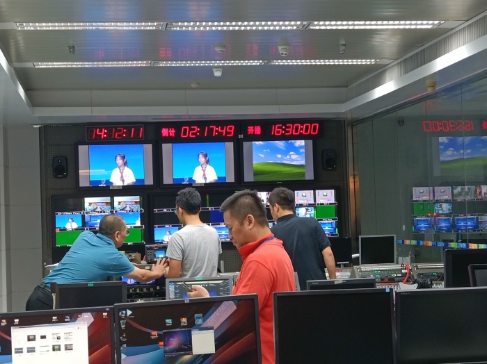 離開轉播車,第二站是參觀中山廣播電視臺的錄播間。同學們平時經(jīng)常在家收看中山新聞,沒想到今日可以踏入新聞直播現(xiàn)場,站在主持人的位置去看到環(huán)形錄播間的全貌,又好奇又興奮。通過劉主任、李主任的講解,同學們不僅知道了新聞直播與主持的節(jié)目流程,還了解到了播音主持工作風光背后的不易與艱辛。