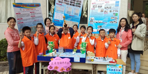 本年度“小小科學家”分為專題探究和STEM項目兩類展評。專題探究主題為“生活中的科學”。參加隊伍須對相關(guān)生活問題進行資料搜集和探究,亦可選擇運用科學原理,針對生活問題提出改善方案、建議或解決方法。探究主題要有科學內(nèi)容及可探究性,并適合學生的程度與能力。石岐第一城小學四(1)班的何永進、王祉喬和陳在宇同學以“比一比 誰的手指更干凈”參加了本次活動。探究小組成員在輔導老師余秋蔚和鐘建梅的指導下,設(shè)計了三個對比實驗,分別檢測同學們洗手后不同時間段的手部衛(wèi)生狀況、在不同活動場所上課后的手部衛(wèi)生狀況、不同年級段學生課間手部衛(wèi)生狀況。通過分組實驗,收集了多次的實驗數(shù)據(jù),整理數(shù)據(jù)統(tǒng)計表并進行分析,測試學校部分同學的手部潔凈度,借實驗數(shù)據(jù)警醒同學們積極洗手、科學洗手,防疫抗疫。展評活動中,探究小組在現(xiàn)場進行的手部潔凈度快速檢測實驗吸引了眾多活動參與者的關(guān)注。經(jīng)過評委們的認真評審,該項目最終獲得一等獎的佳績。 STEM項目主題為“未來交通”,“未來交通”以實物模型展示,模型圍繞交通問題開展。李群嬋和蔡鈺煬老師指導四(1)班廖智美、鐘藝、劉思源、周璟希、梁子軒、肖樂軒六位同學以“未來智能停車場”模型參賽。他們首先設(shè)計問卷,利用“問卷星”進行一場線上問卷調(diào)查和線下“頭腦風暴”,了解人們對停車場的功能或設(shè)計有哪些需求。接著查閱書籍,上網(wǎng)搜索,調(diào)查訪問,了解如今國內(nèi)外有關(guān)停車場設(shè)計的資料和發(fā)展,搜集各種解決問題的方法和工具。經(jīng)過多次論證,小組提出了“疫情防控引導停車場”、“防澇自動報警停車場”、“自動澆灌智能環(huán)保柱子”、“關(guān)愛特殊群體停車場”四大主題設(shè)計構(gòu)思,分工合作,選擇自己感興趣的切入點進行思考,互相幫助,畫出各個創(chuàng)意設(shè)計的圖紙,并在專業(yè)人士的支持與幫助下,完成停車場模型的制作和測試改進。他們的作品得到了評委們的肯定與贊賞,獲得二等獎的好成績。