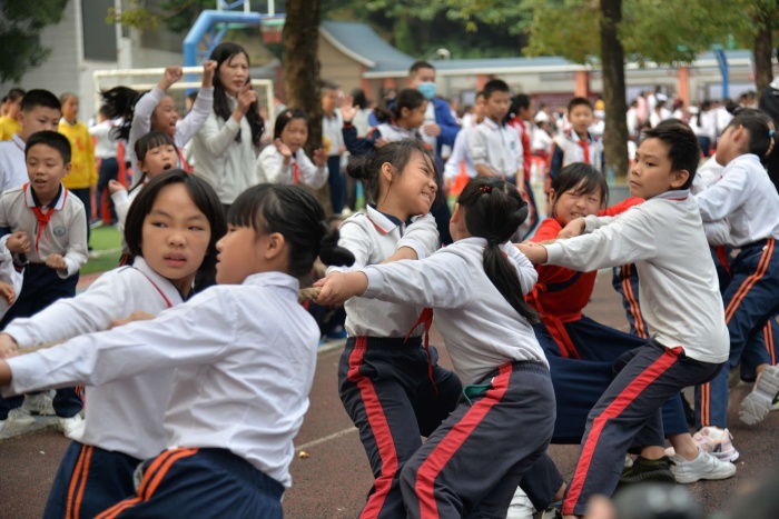 開幕式結(jié)束后各年級進行了激烈的拔河決賽比拼和跳繩比賽,在比賽中,孩子們團結(jié)一心,積極配合,奮勇爭先,加油聲、吶喊聲、歡呼聲沸騰了整個運動場。