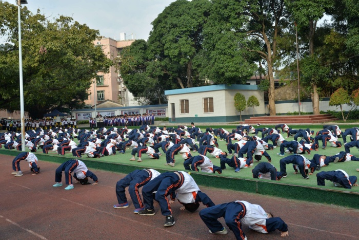 恰同學(xué)少年,風(fēng)華正茂。首先入場的是國旗護衛(wèi)隊、校旗、?;辗疥牐齻兲ぶH鏘的節(jié)奏,邁著整齊的步伐,率先經(jīng)過主席臺接受檢閱;緊接著,升國旗,奏唱國歌,與會的全體人員向國旗行注目禮;緊隨其后的是全校25個班級學(xué)生和教師組成的方陣隊伍,只見師生們步伐矯健、精神抖擻,滿懷熱情,活力四射的《柔韌操》,呆萌可愛,剛?cè)岵簧癫娠w揚的《韻律操》;舞動韻律,飛越夢想的《陽光啦啦操》;跑出自我,轉(zhuǎn)出精彩的《跑跑轉(zhuǎn)體操》;心隨舞動,《我舞,我快樂》,師生共融,互舞青春的《活力操》,朝氣與活力洋溢在每位同學(xué)的身上,新編《張溪大棍》,鏗鏘有力,傳承張溪傳統(tǒng)文化……各個年級用自己獨特的方式向全校師生展示了自我的風(fēng)采,精彩紛呈的節(jié)目令人賞心悅目,沉醉其中。