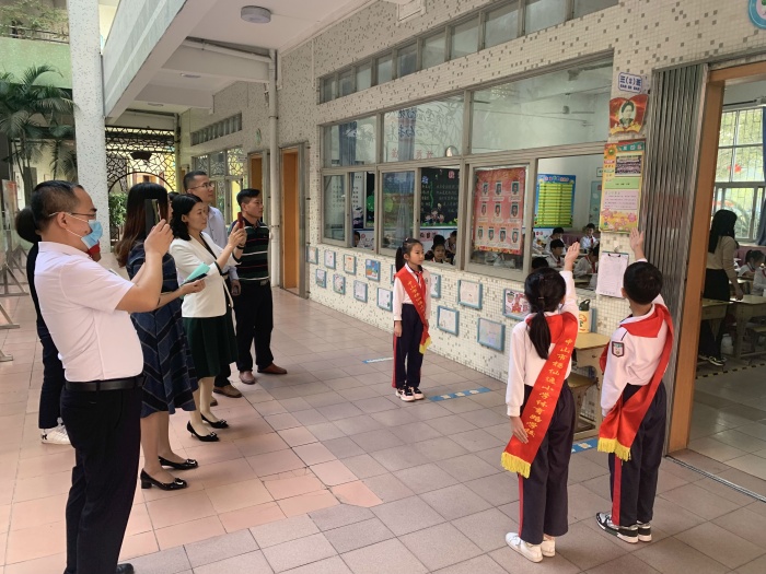 在學校行政的陪同下,培訓班學員一行首先參觀了學校的校園環(huán)境和校園文化,聽取學校文化宣傳員對“日行一孝”“三心教育”“好家風建設”等特色項目介紹,并觀摩了學校的升旗儀式與大課間活動。