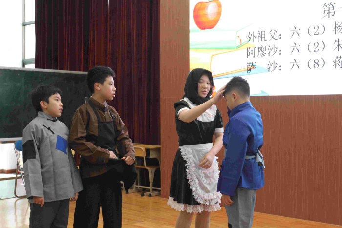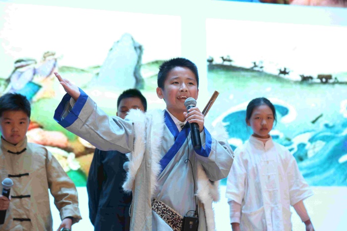 五年級民間故事展演,孩子們在舞臺上詮釋了中國古代民間故事的魅力?!冻料憔饶浮纷屓藙尤荩弧敦傌垞Q太子》《牛郎織女》《獵人海力布》《阿凡提的故事》《西門豹治鄴》扣人心弦……