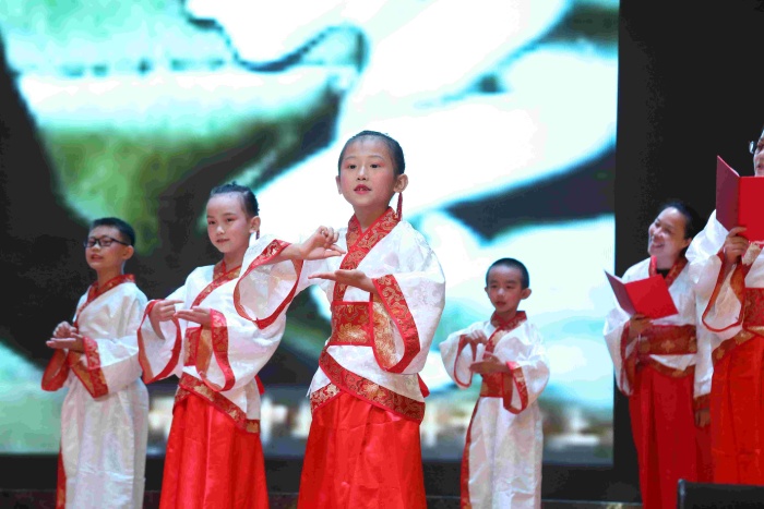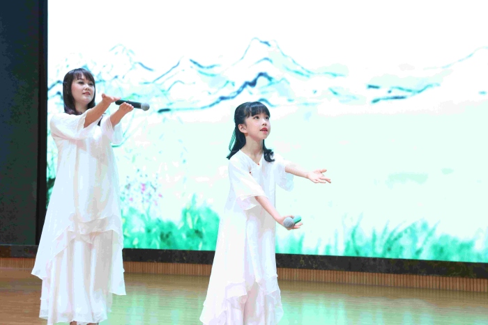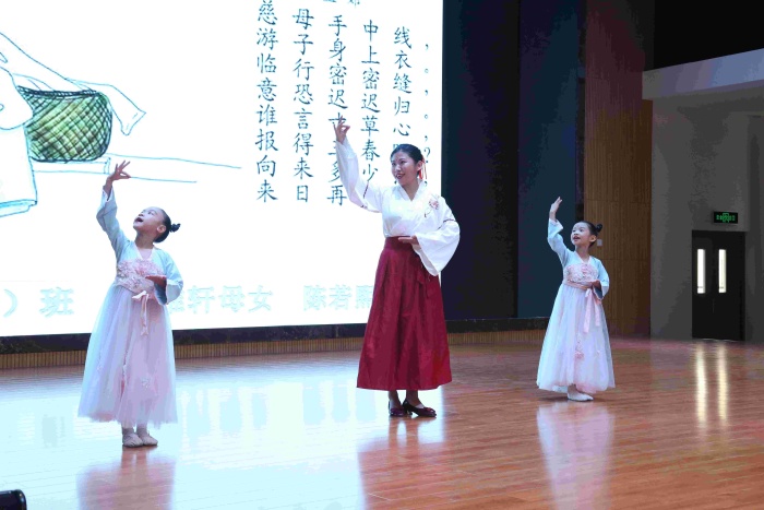 二、三年級的親子誦讀展演異彩紛呈。孩子和爸爸媽媽一起,通過親子共讀、親子共演、親子共誦、親子共吟等多種形式,展現(xiàn)了濃濃的親子閱讀氛圍,表達(dá)了對中華優(yōu)秀傳統(tǒng)文化的熱愛之情?!吨腥A少年》《我和我的祖國》《厲害了我的國》《出塞》《敕勒歌》等節(jié)目氣勢如虹;《春》《愛與夢想》《再別康橋》《中華孝道》《在一起》《逆行者》等節(jié)目溫暖感人……