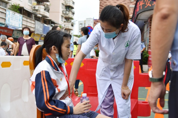 莊嚴(yán)的升旗儀式后,學(xué)校舉行了一個特別的感恩儀式。鄭結(jié)霞校長邀請了學(xué)校的校工、保安和飯?zhí)霉ぷ魅藛T與全校師生一起,接受全校學(xué)生的誠摯敬禮。鄭校長說:學(xué)校后勤工作人員為了復(fù)學(xué)做了大量的工作,正是有了全校老師及后勤工作人員的辛勤付出,才換來今天來之不易的學(xué)習(xí)時光,提醒同學(xué)們一定要更加自律,懂得珍惜與感恩。