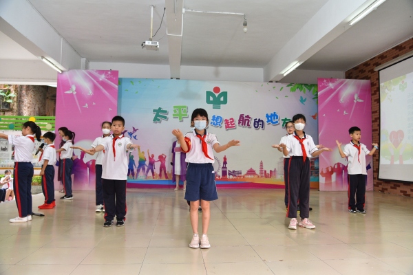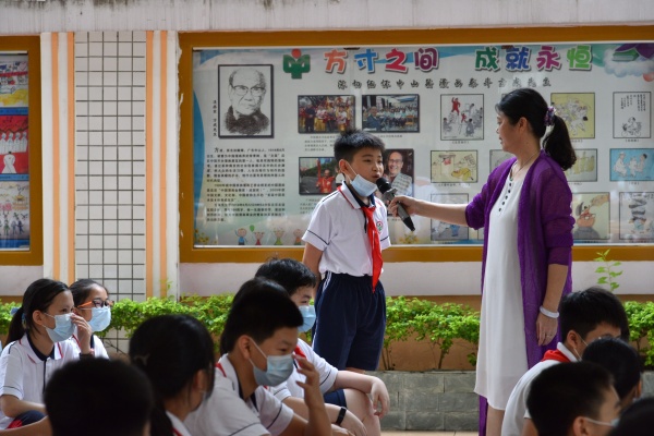 黃老師說:5·25寓意是“我愛我”,通過這樣的特殊日子提醒我們要學(xué)會“珍惜生命,關(guān)愛自己”。學(xué)會關(guān)愛自己、了解自己、接納自己。接著四位大隊干部走上主席臺,從“愛身體、愛情緒、愛生活和愛夢想”四個方面向在場的同學(xué)們講述了他們是如何愛護(hù)自己的。鄭結(jié)霞校長說,我們要珍惜每一個機(jī)會,用欣賞的眼光去感受生活中的美好;要學(xué)會感恩,感恩今天來之不易的學(xué)習(xí)時光,感恩抗疫英雄的辛勤付出……在鄭校長的引領(lǐng)下,全校師生共唱《聽我說,謝謝你》,在嘹亮的歌聲中表達(dá)了師生們對抗疫英雄的感恩之情。