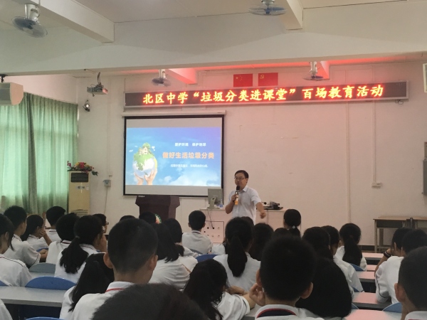 為了提高中學生生活垃圾分類和環(huán)境保護意識,倡導“垃圾分類,從小做起”的教育理念,5月29日下午,中山市城市生活垃圾分類收集實施小組來到了中山市北區(qū)中學,在完美報告廳里,電子科技大學中山學院張景強老師做了“愛護環(huán)境,保護地球”生活垃圾分類的講座,北區(qū)中學初一級的全體師生參加了這次活動。