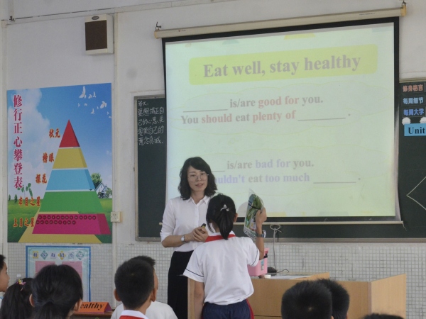 英語(yǔ)科組蔡盈盈老師帶來(lái)“staying healthy”一課,深入挖掘課文圖片及重點(diǎn)單詞,采用思維導(dǎo)圖的方式引導(dǎo)學(xué)生復(fù)述故事,分辨常見(jiàn)生活習(xí)慣的好與壞,給予他人保持健康的建議。課堂上,同學(xué)們口語(yǔ)流利,詞匯量豐富,贏得了觀課教師的陣陣掌聲!