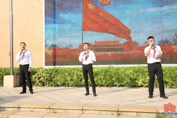 在接下來的愛國歌曲聯(lián)唱環(huán)節(jié)中,大信學(xué)校校三位音樂老師用鏗鏘有力、渾厚莊嚴(yán)的歌聲表達(dá)了對(duì)偉大祖國無限的熱愛之情,臺(tái)下師生共同感受這莊嚴(yán)神圣的時(shí)刻。緊接著,全體師生的齊唱環(huán)節(jié),將整個(gè)活動(dòng)推向最高潮,他們一邊揮舞手中的國旗,一邊高唱愛國歌曲《歌唱祖國》,校園里一片“紅色海洋”,洋溢著滿滿的愛國情懷,大信學(xué)校全校師生向祖國母親獻(xiàn)禮,共同祝福祖國繁榮昌盛。