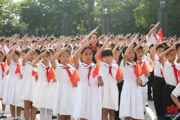 接著,大信學(xué)校馮冠祥常務(wù)副校長作國旗下的講話,他帶領(lǐng)大家回顧了開國大典的精彩瞬間,以及70年來新中國的輝煌成就,同學(xué)們深受鼓舞,民族自豪感油然而生。同時(shí),馮校長向隊(duì)員們發(fā)出倡議,愛國不是一句口號(hào),我們不僅要有愛國之心,更要有愛國之行。今天我們?yōu)檎衽d中華而勤奮學(xué)習(xí),明天我們必定為創(chuàng)造祖國輝煌未來貢獻(xiàn)自己的力量!