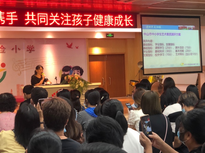 接著,盧主任為全校家長(zhǎng)解讀了《中山市中小學(xué)藝術(shù)素質(zhì)測(cè)評(píng)實(shí)施方案》。藝術(shù)測(cè)評(píng)重點(diǎn)關(guān)注學(xué)生藝術(shù)課程課堂學(xué)習(xí)和學(xué)生參與藝術(shù)實(shí)踐的經(jīng)歷。涵蓋基礎(chǔ)指標(biāo)、學(xué)業(yè)指標(biāo)、發(fā)展指標(biāo)三大板塊,包括課程學(xué)習(xí)、課外活動(dòng)、基礎(chǔ)知識(shí)、基本技能、校外學(xué)習(xí)、藝術(shù)特長(zhǎng)等六個(gè)方面的內(nèi)容。希望家長(zhǎng)們予以重視。