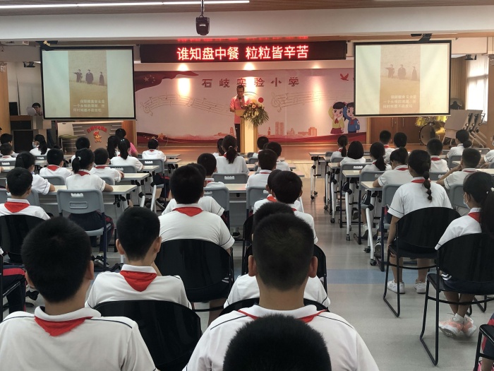 由于疫情的原因,開學(xué)典禮通過紅領(lǐng)巾電視臺舉行,早上8:10分開學(xué)典禮在莊嚴(yán)的國歌聲中拉開了序幕,全體起立,升國旗,奏國歌,唱校歌。接著,主持人介紹新來的老師以及新同學(xué),新同學(xué)代表在用稚嫩的聲音說出了好好學(xué)習(xí)的決心。隨后,馮漢文校長給全校師生進(jìn)行《誰知盤中餐粒粒皆辛苦》思政第一課專題講座?!耙恢嘁伙?,當(dāng)思來處不易;半絲半縷,恒念物力維艱”。馮校長說:勤儉節(jié)約是我們的傳家寶,建設(shè)節(jié)約型社會,是每一位公民應(yīng)有的責(zé)任。中山是文明之城、博愛之城、和美之城,也是知名的魚米之鄉(xiāng)、美食之都,歷來崇尚艱苦奮斗,務(wù)實(shí)進(jìn)取,我們更應(yīng)珍惜糧食,厲行節(jié)約,反對浪費(fèi)。