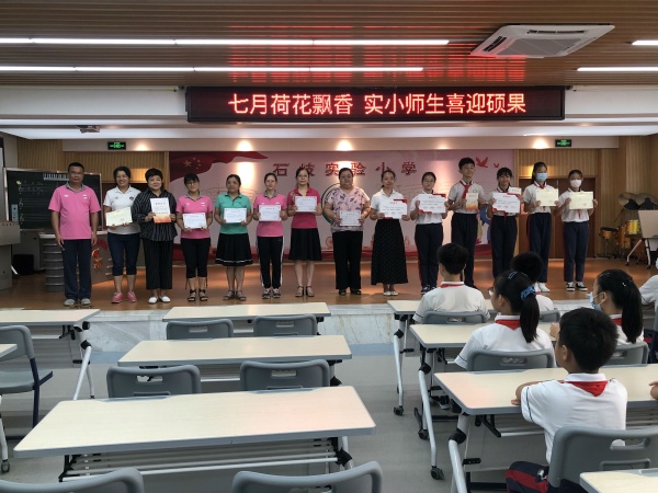 抱擁豐收的喜悅,共同見證輝煌!每一份驚喜都是汗水和淚水的匯集,無論是忙碌、還是瑣碎,無論是委屈,還是感動,一路堅(jiān)定走來,為自己的未來發(fā)展打下堅(jiān)實(shí)基礎(chǔ),為學(xué)校貢獻(xiàn)出自己的一份力量!七月荷花飄香,實(shí)小師生喜迎碩果!在師生熱烈的掌聲中,頒獎活動圓滿結(jié)束。