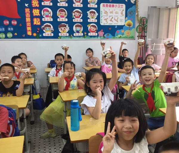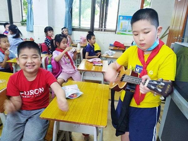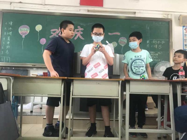 為了讓學(xué)生過得更快樂、更開心、更放松心情,學(xué)校允許學(xué)生當天可以穿自己最喜歡的衣服,午餐加菜,每人增加一只烤雞翅,下午為每個孩子送一個雪糕,下午第1節(jié)課的時間各班舉行小型慶?;顒樱械陌嗉夐_展智多星轉(zhuǎn)起來,讓六一節(jié)增加了不少色彩;有的班級為特殊的六一干一杯,祝福偉大的祖國,疫情過后咱們又得以重返校園;有的班級進行“我也來出個小謎語考考大家”活動,同學(xué)們躍躍欲試,你出我猜,甚是熱鬧!第2節(jié)課各班同學(xué)在班主任的組織下結(jié)合全省中小學(xué)返校復(fù)學(xué)時間節(jié)點,全省各級少先隊組織以中隊活動的形式,組織全省少先隊員同上一堂隊課,于下午15:00-15:30的時間里統(tǒng)一收看由廣東廣播電視臺少兒頻道播出的廣東省少先隊活動“云隊課”《守護生命的對話》,組織隊員匯報“廣東紅領(lǐng)巾致敬逆行先鋒”活動成果,開展“抗疫小衛(wèi)士章”考章頒章活動,激發(fā)少先隊員從小學(xué)先鋒,長大做先鋒的成長志向。特殊六一,向抗疫先鋒敬禮!