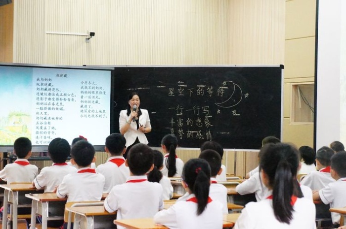 上午由石岐第一小學(xué)鄭素言老師帶來《星空下的等待》詩(shī)歌創(chuàng)作課例。課堂上鄭老師帶著石岐張溪鄭二小學(xué)四(5)班的孩子們探討創(chuàng)作兒童詩(shī)的秘訣,從故事繪本欣賞、想象力訓(xùn)練、真實(shí)情感大膽表達(dá)三個(gè)維度開展,一步一步引導(dǎo)學(xué)生慢慢打開想象力的大門,創(chuàng)作出屬于自己的童詩(shī)童謠。接著,鄭素言老師的專題講座《詩(shī)路花語,且行且思》,在生動(dòng)課例的呈現(xiàn)基礎(chǔ)之上,從孩子們喜歡的兒童詩(shī)、文學(xué)社十年詩(shī)教回顧、指導(dǎo)學(xué)生寫詩(shī)的秘訣、詩(shī)歌課題的設(shè)想四個(gè)方面講述了自身的詩(shī)歌教學(xué)之路,啟迪新語文教師們?cè)娨庹n堂始于讀,啟于思,成于行。