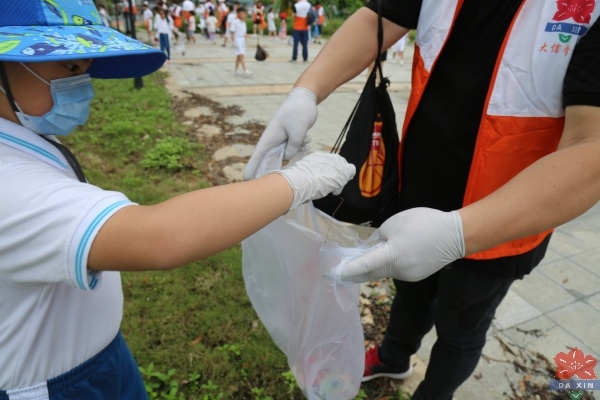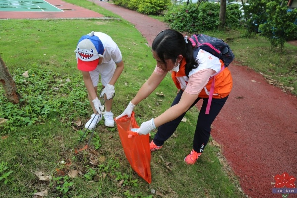 整個活動以班級為單位,大信學校一(3)班和二(3)班都有志愿服務小組及其組長。活動過程中,家長與孩子密切配合,積極主動的拿著垃圾袋,戴著手套把江邊的煙頭,塑料袋,飲料瓶等垃圾一一撿起。孩子們都覺得這樣的活動意義非凡,大家的積極性都很高,雖滿頭大汗,仍覺得樂意無窮。