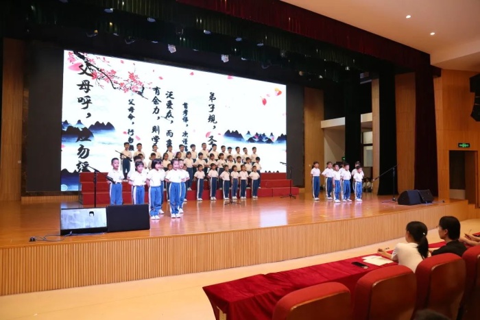 一、二年級(jí)美文誦讀活動(dòng),為讀書節(jié)添上了濃墨重彩的一筆。激情飛揚(yáng)的吟唱、清新儒雅的低誦,一首首耳熟能詳、膾炙人口的經(jīng)典詩(shī)文,在同學(xué)們的精心演繹下,以不同的形式表達(dá)了對(duì)經(jīng)典詩(shī)文的理解——悠悠詩(shī)韻,淡淡墨香,孩子們通過演繹《四季詩(shī)韻》、《月令詩(shī)詞》,將描寫四季的詩(shī)歌巧妙地串在了一起,演繹了別樣的四季;瑯瑯上口的《三字經(jīng)》、《弟子規(guī)》、《笠翁對(duì)韻》,讓孩子們?cè)谡b讀中感受蒙學(xué)經(jīng)典的獨(dú)特韻味;《古朗月行》、《靜夜思》、《贈(zèng)汪倫》、《游子吟》……孩子們用粵語(yǔ)吟誦一首首耳熟能詳?shù)墓旁?shī),充分地理解了古詩(shī)的意境美;《春之令》以飛花令形式展開,孩子們靈動(dòng)的語(yǔ)言,可愛的笑容,俘獲了臺(tái)下小觀眾們的心;《唐詩(shī)里的中國(guó)》別具一格傾情演繹,在歌聲、朗誦、舞蹈中將唐詩(shī)之美表現(xiàn)得淋漓盡致……