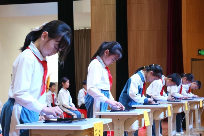 三、四年級(jí)漢字聽寫大賽為讀書節(jié)增添了別樣的風(fēng)采。擂臺(tái)賽上,參賽選手凝神靜氣,全神貫注地聽題,“橫豎勾,點(diǎn)撇捺……”選手們沉著冷靜,時(shí)而思考,時(shí)而書寫,每一個(gè)自然舒展、妙手在心的漢字背后,都凝結(jié)了老師、同學(xué)們平日的勤學(xué)苦練。最終,梁鎬楊同學(xué)獲得三年級(jí)漢字聽寫大賽的冠軍,羅若水、魏偉霖同學(xué)獲得四年級(jí)漢字聽寫大會(huì)的冠軍,還有多位同學(xué)獲得“漢字小達(dá)人”的榮譽(yù)稱號(hào)。