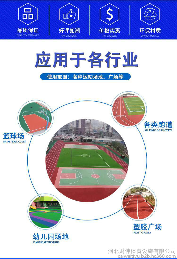 ??防滑性:塑膠跑道特制的覆蓋層,能確保其表面不滑,為運動員供給一個觸摸安穩(wěn)的安全感覺,即便在濕潤條件下和惡劣氣候中也能確保運動員腳下結壯,起步、加快、跑動快速安全。簡便性:混合型塑膠跑道在其合理運用范圍內(nèi)無需特別維護,但日常清潔、沖刷是必要的,恰當?shù)木S護能進步其運用壽命。
