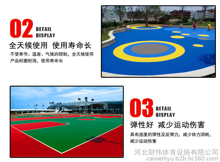 ??安穩(wěn)性:混合型塑膠跑道具有優(yōu)異的抗老化及耐鹽霧、濕熱、臭氧、紫外線功用,內(nèi)涵物理機械性能及外觀結構特征恒久不變,延伸其 運用壽命。實用性:塑膠跑道是全天候跑道,在具有恰當排水系統(tǒng)時,大雨后或沖刷后也能當即用于練習、比賽和游戲,且其運用性能不變。