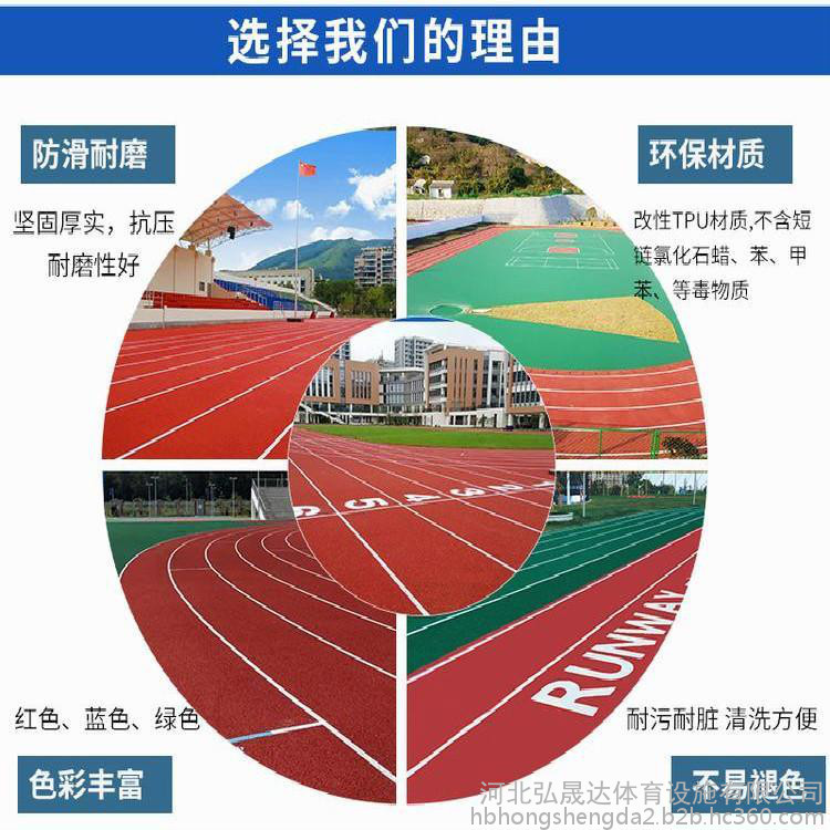 塑膠跑道又稱全天候田徑運動跑道,它由聚氨酯預聚體、混合聚醚、廢輪胎橡膠、EPDM橡膠?;騊U顆粒、顏料、助劑、填料組成。塑膠跑道具有平整度好、抗壓強度高、硬度彈性適當、物理性能穩(wěn)定的特性,有利于運動員速度和技術的發(fā)揮,有效地提高運動成績,降低摔傷率。塑膠跑道是由聚氨酯橡膠等材料組成的,具有一定的彈性和色彩,具有一定的抗紫外線能力和耐老化