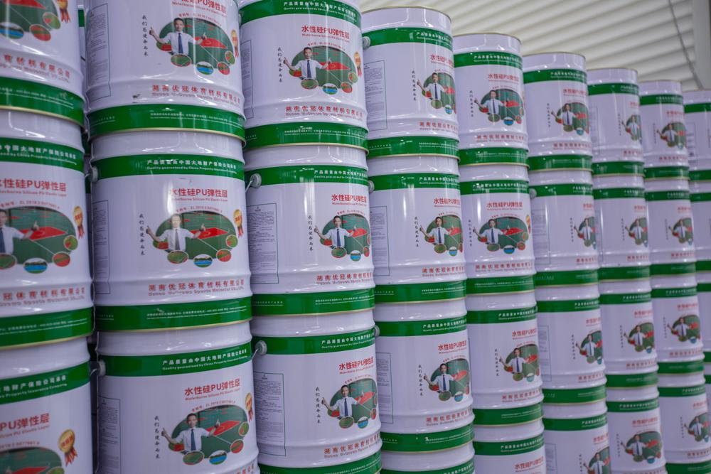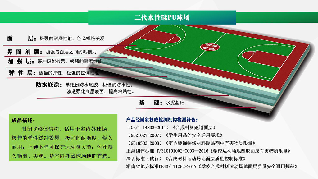 4mm二代水性硅PU環(huán)保塑膠球場材料,出廠材料價(jià)67元/平方。