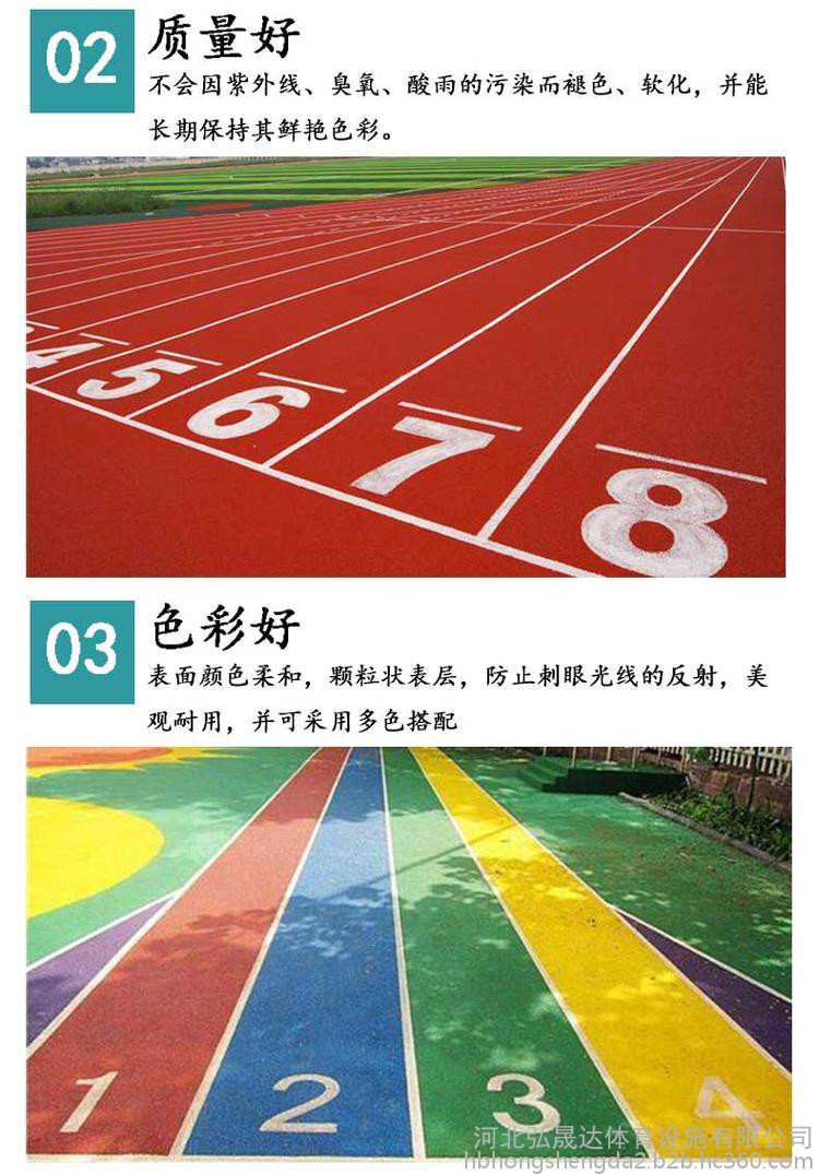 2、塑膠跑道在具有肯定排水設備的條件下,適應全天運用。塑膠跑道作為運動練習、競賽和學生靜止及健身錘煉之用,不適作其它用處;