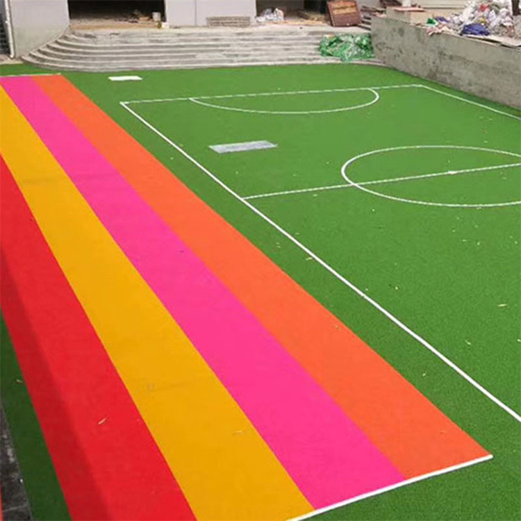 將甲:乙比例為1:4和EPDM顆粒(2-3mm)混合配比料運至推鋪現場下料后即開始攤鋪