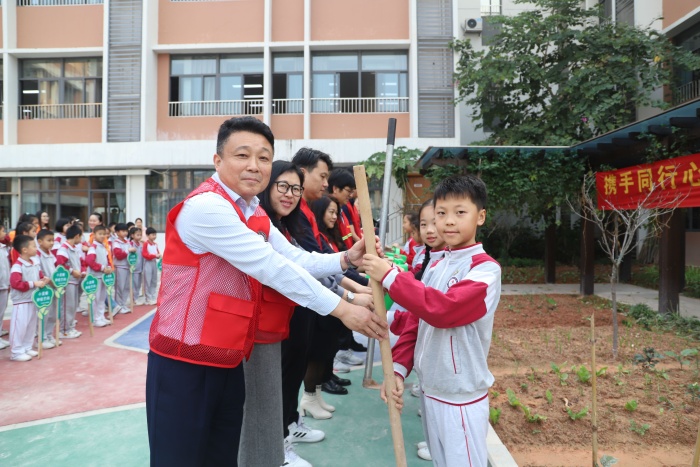 3月12日的植樹節(jié)當(dāng)天,開發(fā)區(qū)博凱小學(xué)黨支部結(jié)合主題黨日活動,組織策劃了 “攜手同行心向黨,陽春三月春耕忙”的春耕啟動儀式,學(xué)校黨員、團員、少先隊志愿者代表參加了本次活動。