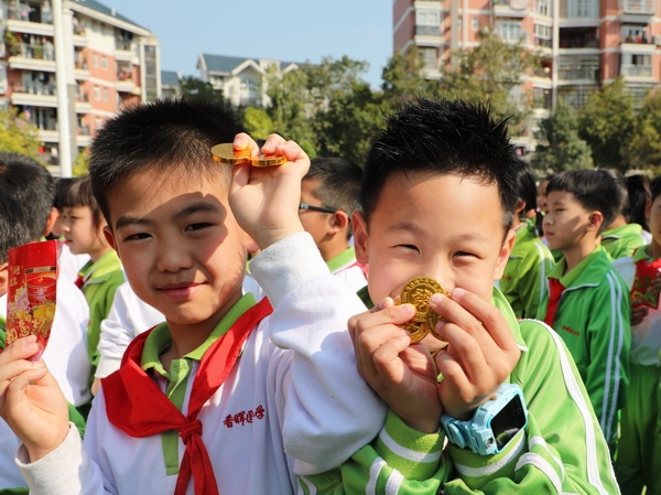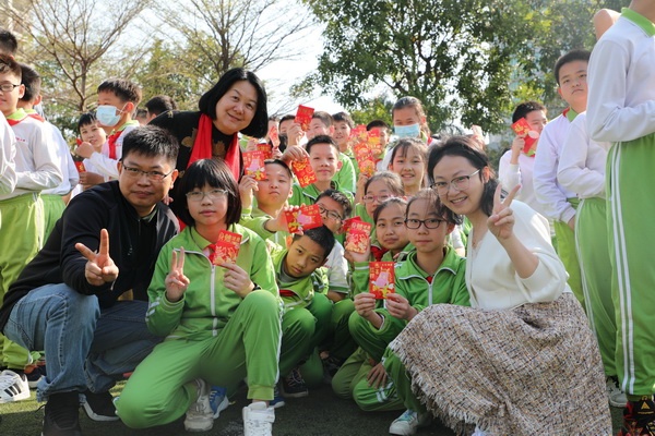 據(jù)悉,這些“利是”由學(xué)校德育處統(tǒng)一準(zhǔn)備,每個(gè)“利是”中裝著“金幣巧克力”,祝愿孩子們前程似金幣般閃耀奪目,生活似巧克力般甜蜜。最后,全體師生高舉“利是”,齊聲祝愿“新年快樂”,現(xiàn)場匯聚成一片紅色的歡樂海洋。