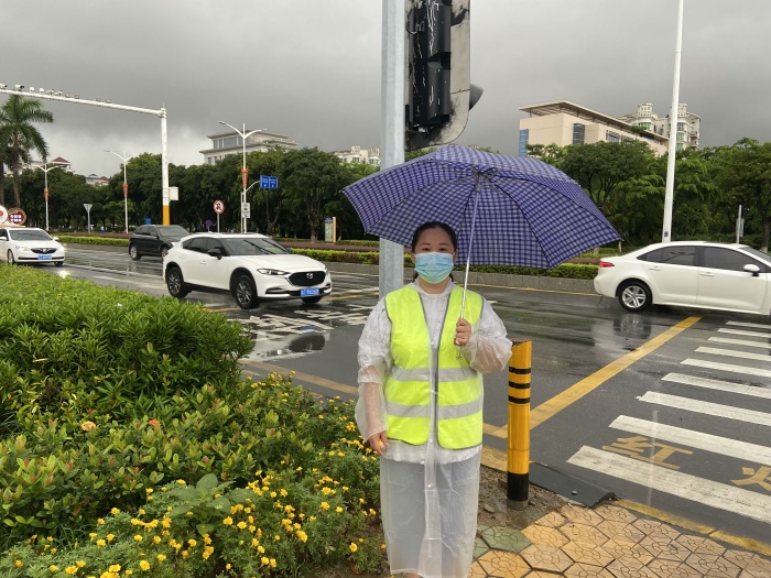 早上7點(diǎn)20分,開發(fā)區(qū)第一小學(xué)的教師志愿者們就來到世紀(jì)一路十字路口,教師志愿者穿著統(tǒng)一的志愿者服,佩戴口罩,盡管受臺風(fēng)“查帕卡”的影響,仍阻止不了教師志愿者的行動,她們冒雨堅守崗位,與交警們一起在各個主要路口,指揮著出行的市民安全有序的過馬路。在勸導(dǎo)過程中,非機(jī)動車不按車道行駛、越過停止線、未佩戴頭盔、超載等不文明行為,在志愿者勸導(dǎo)下路口漸漸整齊有序。她們還為行人做指引,保證行人能安全過馬路。