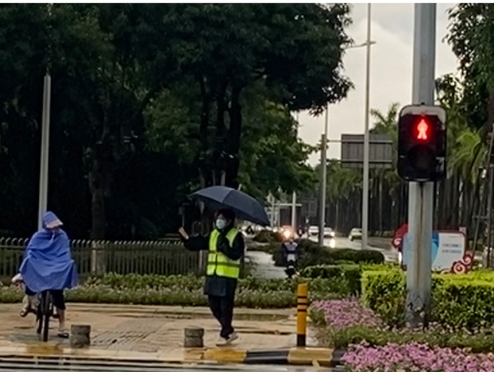教師志愿者無懼風(fēng)雨協(xié)助交警維護(hù)交通秩序,充分感受到交警的辛苦,他們?yōu)閺V大市民營造出一個平安的出行環(huán)境而盡職盡責(zé)。文明交通、文明你我,黃色馬甲的志愿者以實(shí)際行動影響著周圍的人群,作為文明城市的建造者,一言一行都與城市緊緊相連,文明出行,遵守交通法規(guī)。