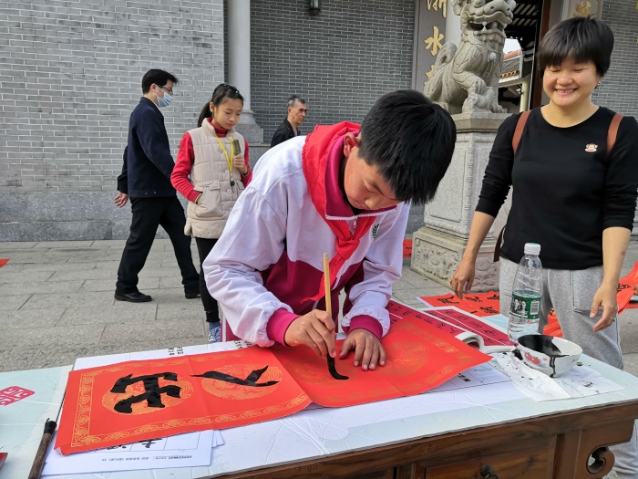 1月28日下午,李堆威、丘志偉兩位老師帶領(lǐng)著開發(fā)區(qū)第一小學(xué)書法社團(tuán)的學(xué)生參加了由火炬區(qū)書法中心教研組與濠頭聯(lián)富社區(qū)聯(lián)合舉行的“迎新春送春聯(lián)”活動。當(dāng)天活動現(xiàn)場處處洋溢著濃濃的新年節(jié)日氛圍,開發(fā)區(qū)第一小學(xué)書法社團(tuán)的“小書法家”們自信大膽地展現(xiàn)了扎實的書法功底,得到了社區(qū)居民一致稱贊。短短的2個小時,開發(fā)區(qū)第一小學(xué)的“小書法家”們書寫了近百幅春聯(lián),將這些春聯(lián)凝結(jié)成一份份美好的祝福,真摯地送給社區(qū)居民。
