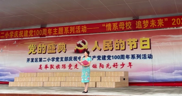 陳江老師代表開發(fā)區(qū)第二小學(xué)全體教師,給即將邁入初中生活的孩子們送上祝福,祝他們在新的人生道路上茁壯成長,鼓勵(lì)他們向著新的征程揚(yáng)帆起航,愿二小學(xué)子們不忘初心,牢記使命,帶著二小的文化基因逐夢前行,成長為對(duì)家庭幸福、對(duì)國家昌盛有用的人才!