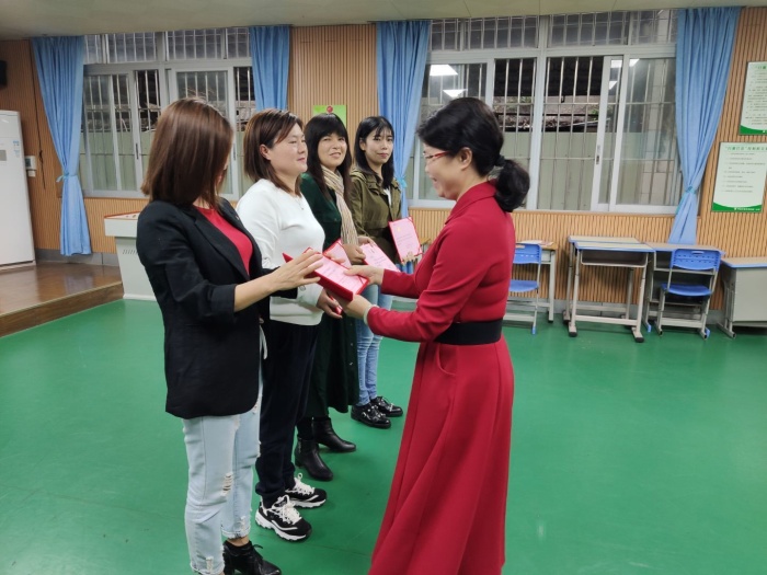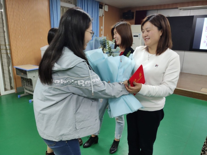 接著,陳老師宣讀結(jié)對名單,由今年新調(diào)入二小的四位青年教師和有經(jīng)驗的老教師結(jié)成了四組對子。隨后,四位師傅上臺接受周瑞珍校長頒發(fā)的聘書,徒弟向師傅獻花表達感激之情。一紙聘書,承載的是沉甸甸的囑咐;深深一躬,滿含著青年教師成長的渴望;緊緊相握的雙手,蘊含著師徒結(jié)對的濃濃情誼。相信每一對師徒都能攜手共進,共同成長。