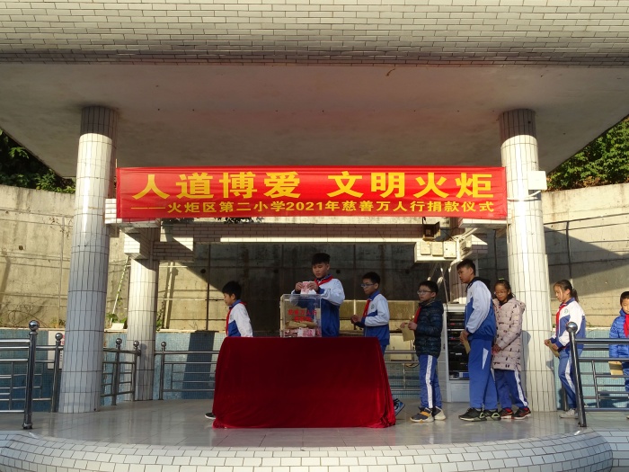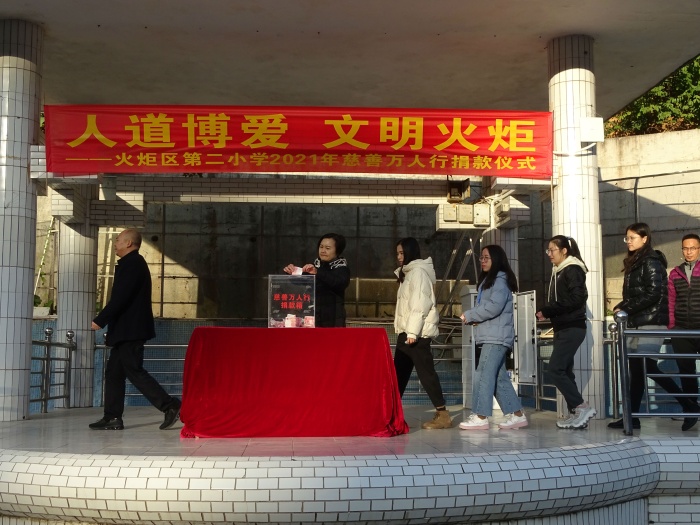 為積極響應(yīng)2021年市、區(qū)慈善萬人行活動倡議,弘揚人道博愛精神,倡導(dǎo)中華美德,唱響新時代主旋律,營造互幫互助互愛的社會氛圍,為建設(shè)文明火炬區(qū)加快高質(zhì)量崛起貢獻力量,2020年12月31日上午,開發(fā)區(qū)第二小學(xué)舉行主題為“人道博愛,文明火炬”2021年慈善萬人行義捐活動。