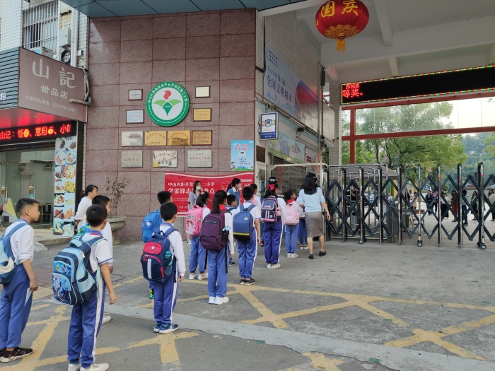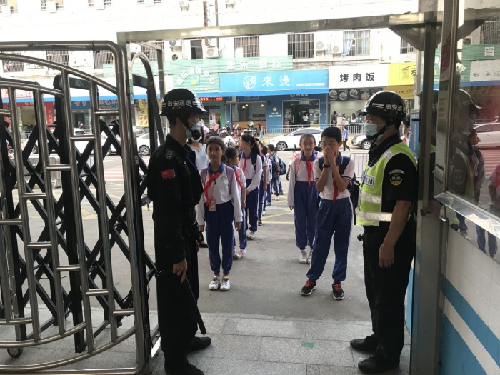 演練開始,學生每人間隔一米,有序排隊,逐個進行入校體溫檢測。值日行政人員、教師和門衛(wèi)組成護導隊,提醒學生保持安全距離,并對學生的體溫進行測量、登記。體溫異常學生在值日行政人員的帶領下前往觀察區(qū)和隔離區(qū)。隨即校醫(yī)對學生進行詢問、體溫復測和初步診斷,做好記錄后,通知家長來接,由其家長按要求及時到定點醫(yī)院并按照醫(yī)療機構指引處理。