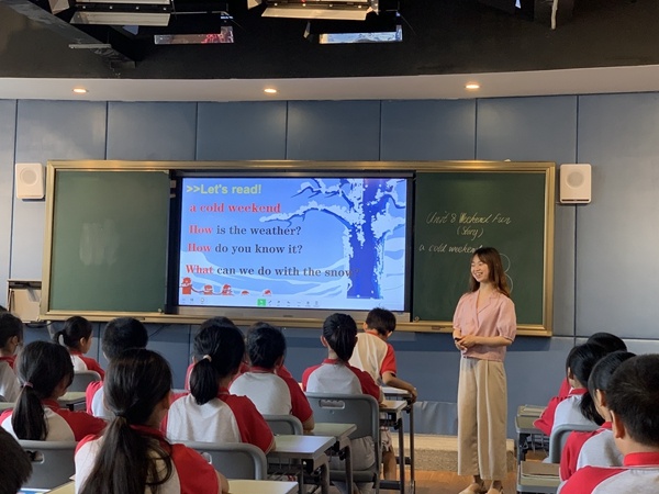 首先,博凱小學(xué)的游彩霞老師圍繞課題上了一節(jié)故事示范課。游老師執(zhí)教的是四年級(jí)下學(xué)期《Weekend Fun》story部分。游老師以節(jié)奏歡快的英語(yǔ)歌曲熱場(chǎng),地道的英語(yǔ)發(fā)音,極強(qiáng)的表現(xiàn)力和感染力,讓課堂充滿了激情和活力。學(xué)生在輕松愉快的氛圍中發(fā)展了語(yǔ)言和思維,在情景中體驗(yàn)著學(xué)習(xí)英語(yǔ)的快樂(lè)。游老師根據(jù)故事內(nèi)容,以圖片環(huán)游的方式幫助學(xué)生去理解故事內(nèi)容。通過(guò)創(chuàng)設(shè)情境,引導(dǎo)學(xué)生觀察圖片,并根據(jù)故事文本設(shè)置了不同的問(wèn)題,由簡(jiǎn)入難層層深入故事學(xué)習(xí)。課堂教學(xué)環(huán)節(jié)科學(xué)有效,很好的實(shí)現(xiàn)了教學(xué)目標(biāo)。游老師通過(guò)手繪圖片搭建思維導(dǎo)圖,生動(dòng)新穎的板書(shū)極大程度上吸引學(xué)生的學(xué)習(xí)興趣。完成故事文本教學(xué)后,游老師注重引導(dǎo)學(xué)生根據(jù)思維導(dǎo)圖進(jìn)行復(fù)述。孩子們認(rèn)真思考,積極參與復(fù)述環(huán)節(jié)。大部分孩子表現(xiàn)得自信大方,能正確運(yùn)用思維導(dǎo)圖上的關(guān)鍵詞進(jìn)行故事復(fù)述,所表達(dá)的信息準(zhǔn)確且完整。孩子們流暢、生動(dòng)的復(fù)述將本節(jié)課的故事教學(xué)推向了高潮。游老師及時(shí)對(duì)孩子們的復(fù)述情況進(jìn)行適當(dāng)評(píng)價(jià),效果良好。