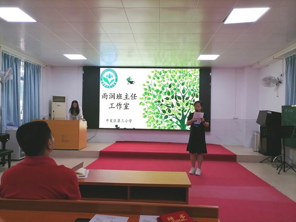 儀式上,首先由德育主任藍(lán)佩賢主任宣布換屆,她既肯定了上屆班主任工作室所取得的成績(jī),又對(duì)下一屆班主任工作室提出了期望,希望這個(gè)團(tuán)隊(duì)能夠發(fā)揮最大潛能,取得更多成績(jī)。隨后由劉校長(zhǎng)為工作室主持人及成員頒發(fā)聘書(shū),并宣布開(kāi)發(fā)區(qū)第三小學(xué)“雨潤(rùn)”班主任工作室正式成立。工作室主持人王麗老師向大家介紹了工作室的“人員架構(gòu)”“文化介紹”特別說(shuō)明了班主任工作室名字的由來(lái),她說(shuō):“雨潤(rùn)班主任工作室,取自杜甫《春夜喜雨》中的“隨風(fēng)潛入夜,潤(rùn)物細(xì)無(wú)聲”。春雨無(wú)聲卻滋潤(rùn)萬(wàn)物,煥發(fā)大地的勃勃生機(jī)。而工作室就想做這平凡的春雨,悄悄地滋潤(rùn)這塊德育的“沃土”,使它成為班主任們的港灣、心靈的加油站、方法的實(shí)驗(yàn)室,讓大家在這里迸發(fā)思想的火花?!比缓蠛?jiǎn)單地介紹了工作室的制度及發(fā)展規(guī)劃,期待未來(lái)的三年,雨潤(rùn)工作室可以取得更多豐碩的成果。最后,校長(zhǎng)以兩個(gè)詞語(yǔ)總結(jié)發(fā)言,“王者歸來(lái)”“再創(chuàng)佳績(jī)”簡(jiǎn)單的兩個(gè)詞語(yǔ)卻將學(xué)校領(lǐng)導(dǎo)的殷殷期盼表達(dá)的淋漓盡致。