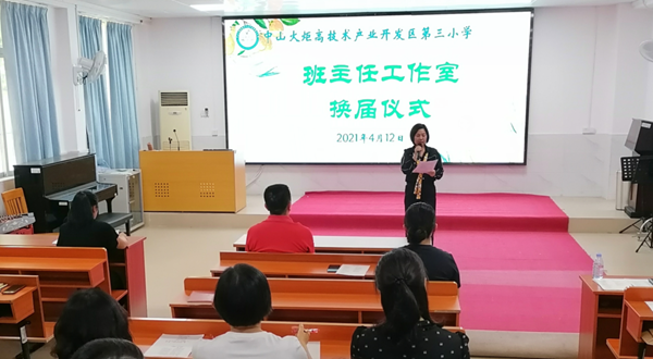 2021年4月12日下午,開(kāi)發(fā)區(qū)第三小學(xué)在階梯教室舉行“班主任工作室換屆”儀式,劉光旗校長(zhǎng)攜全體教師參加儀式,會(huì)議由楊潤(rùn)松老師主持。