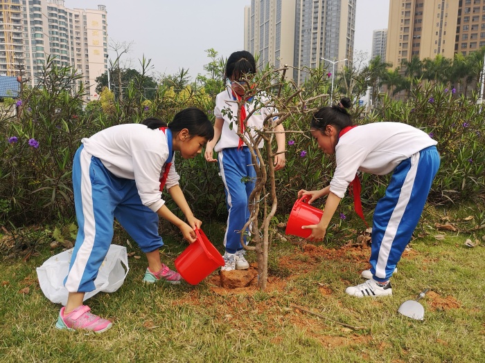 綠水青山就是金山銀山,擁有天藍(lán)、地綠、水凈的美好家園,是每個(gè)中國人的夢(mèng)想?;鹁鎱^(qū)第五小學(xué)將結(jié)合學(xué)?!皠趧?dòng)教育”課程,持續(xù)開展種綠、護(hù)綠活動(dòng),以實(shí)際行動(dòng)倡導(dǎo)尊重自然、愛護(hù)自然的生態(tài)文明理念。讓愛護(hù)大自然的種子在五小的隊(duì)員們心中生根發(fā)芽。